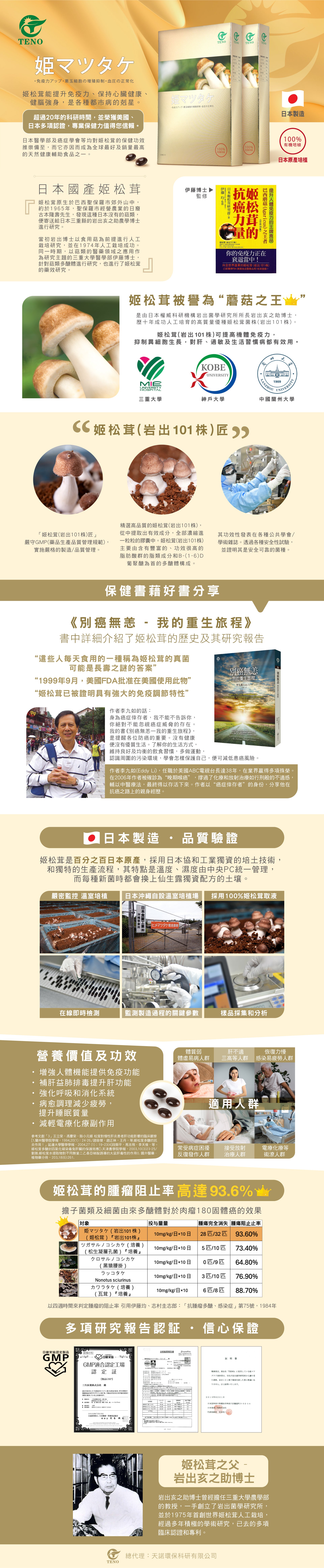 內含獨特的多醣體,經日本多項醫學報告証明,或有助提升人體免疫能力,大補元氣,維持心臟健康,健腦強身,是各種都市病的剋星。